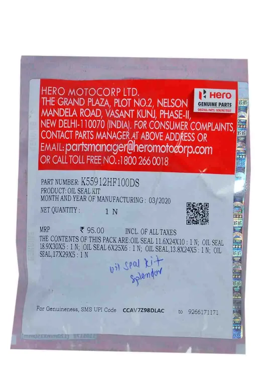 1. Enhance the performance and longevity of your Hero Splendor with the Hero Oil Seal Kit. This essential kit includes high-quality seals designed to prevent oil leaks, ensuring optimal engine efficiency and reducing maintenance costs. Crafted for durability and precision, the oil seals provide a perfect fit, making installation straightforward and hassle-free. Invest in the Hero Oil Seal Kit to keep your motorcycle running smoothly and reliably on every ride.