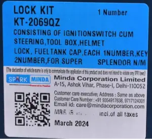 1. Enhance the security of your Hero Splendor Ismart with the Lock Kit Set of 4 from Spark Minda. This comprehensive set includes high-quality locks designed specifically for your motorcycle, ensuring a perfect fit and reliable performance. Each lock is crafted for durability and ease of use, providing peace of mind while safeguarding your vehicle against theft. Upgrade your bike’s security effortlessly with this essential accessory, and enjoy the confidence that comes with knowing your Hero Splendor Ismart is well-protected.