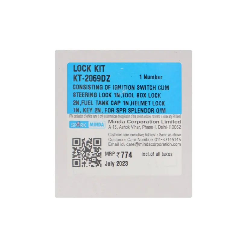 • Spark Minda Lock Kit Set Of 4 For Splendor Plus I3s Bs4