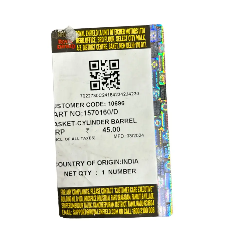 1570160/d Gasket-cylinder Barrel Royal Enfield Reborn Classic 350cc Meteor 350cc Hunter 350cc