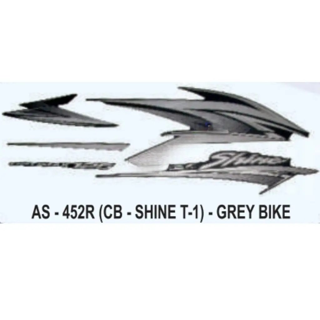 1. Introducing the Graphics Sticker Set for Honda CB Shine, Type 1, in a sleek and stylish grey color. This high-quality sticker set is designed specifically for Honda CB Shine motorcycles, adding a touch of personalization and flair to your vehicle. With its unique design and attention to detail, this sticker set is perfect for those looking to enhance the appearance of their Honda CB Shine.