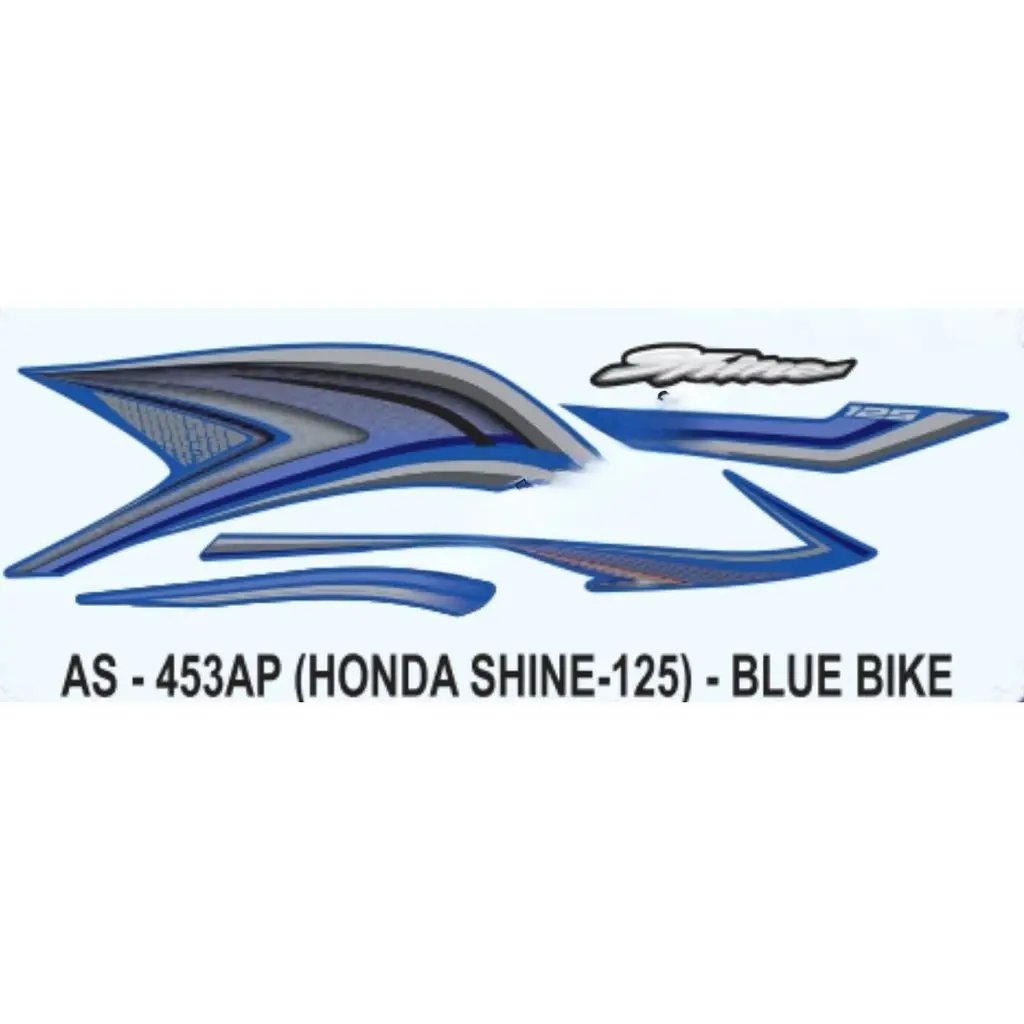 1. Introducing the Graphics Sticker Set for Honda Shine 125, designed specifically for Honda Shine 125 motorcycles in a vibrant blue color. This sticker set is the perfect way to add a touch of personalization and style to your vehicle. Crafted with precision and attention to detail, these stickers are made to enhance the overall appearance of your Honda Shine 125.