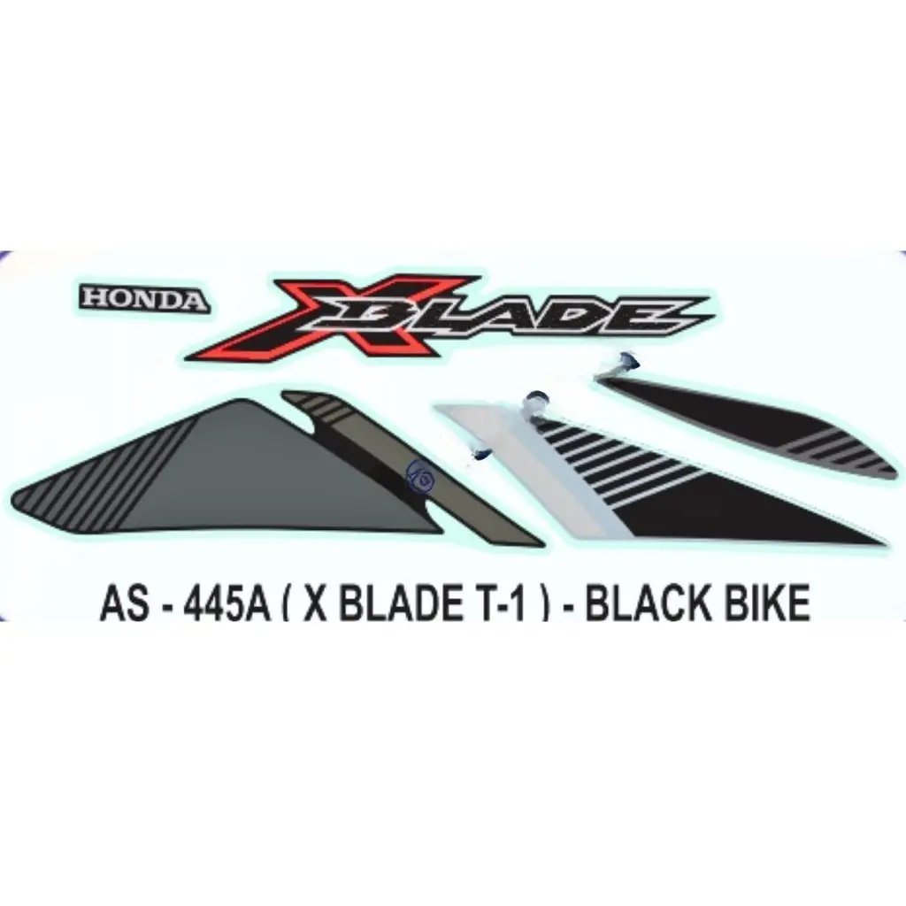 1. Introducing the Graphics Sticker Set for Honda X Blade, specifically designed for the Type 1 model in a sleek and stylish black color. This set is the perfect way to enhance the appearance of your Honda X Blade and make it stand out from the crowd. With its high-quality materials and precision-cut design, these graphics stickers are made to last and withstand the elements, ensuring a long-lasting and durable addition to your vehicle.