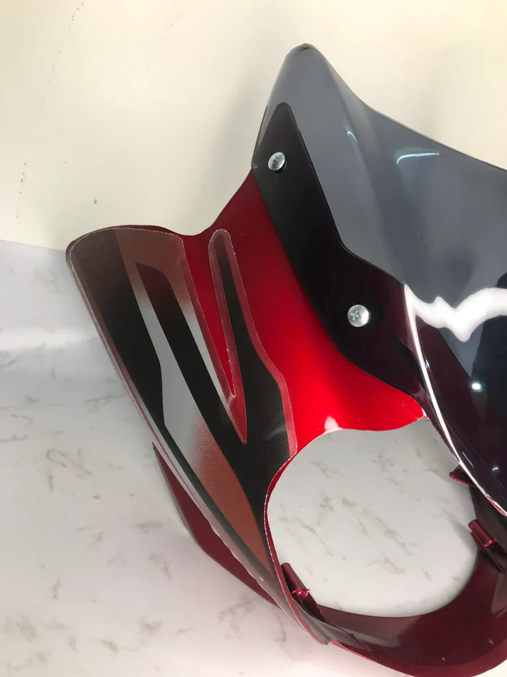 Crafted from high-quality materials, the headlight visor is built to withstand the rigors of daily riding. The chosen materials offer durability, impact resistance, and UV protection, ensuring that the vibrant red color retains its brilliance over time, even under harsh sunlight.