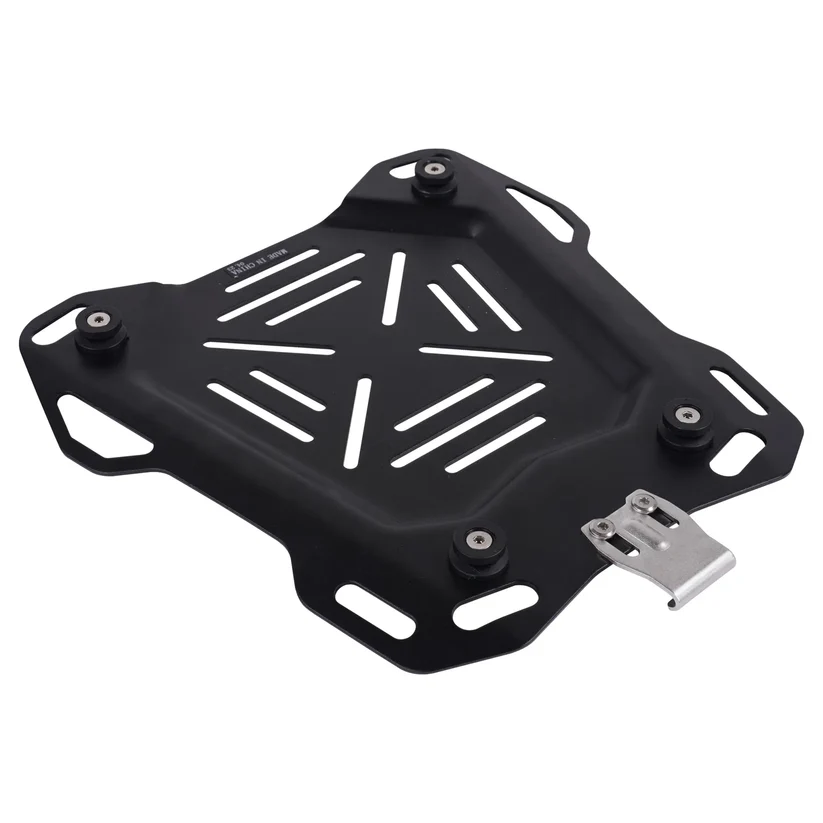 Made from high-grade aluminium, the LGP deluxe aluminium top box is lightweight but extremely robust, offering perfect on-bike storage solutions for scooters and motorbikes. They are ideal for scooter delivery purposes. A contoured edging design strengthens the top box to be sturdy and rigid with extra strong polymer corner bumpers. It comes with a universal mounting plate with a locking quick-release buckle to enable swift removal and fitting of the top box. A premium padded internal leather-look liner provides insulation and internal protection with handy storage slots in the lid liner. A strong key lock mechanism for security and mounting points at the corners enables additional items to be strapped to the top box. It also offers 65L storage capacity and a max load of 10kgs. It measures 57x31x40cm (WxHxD) and has reflective decals for maximising night visibility
